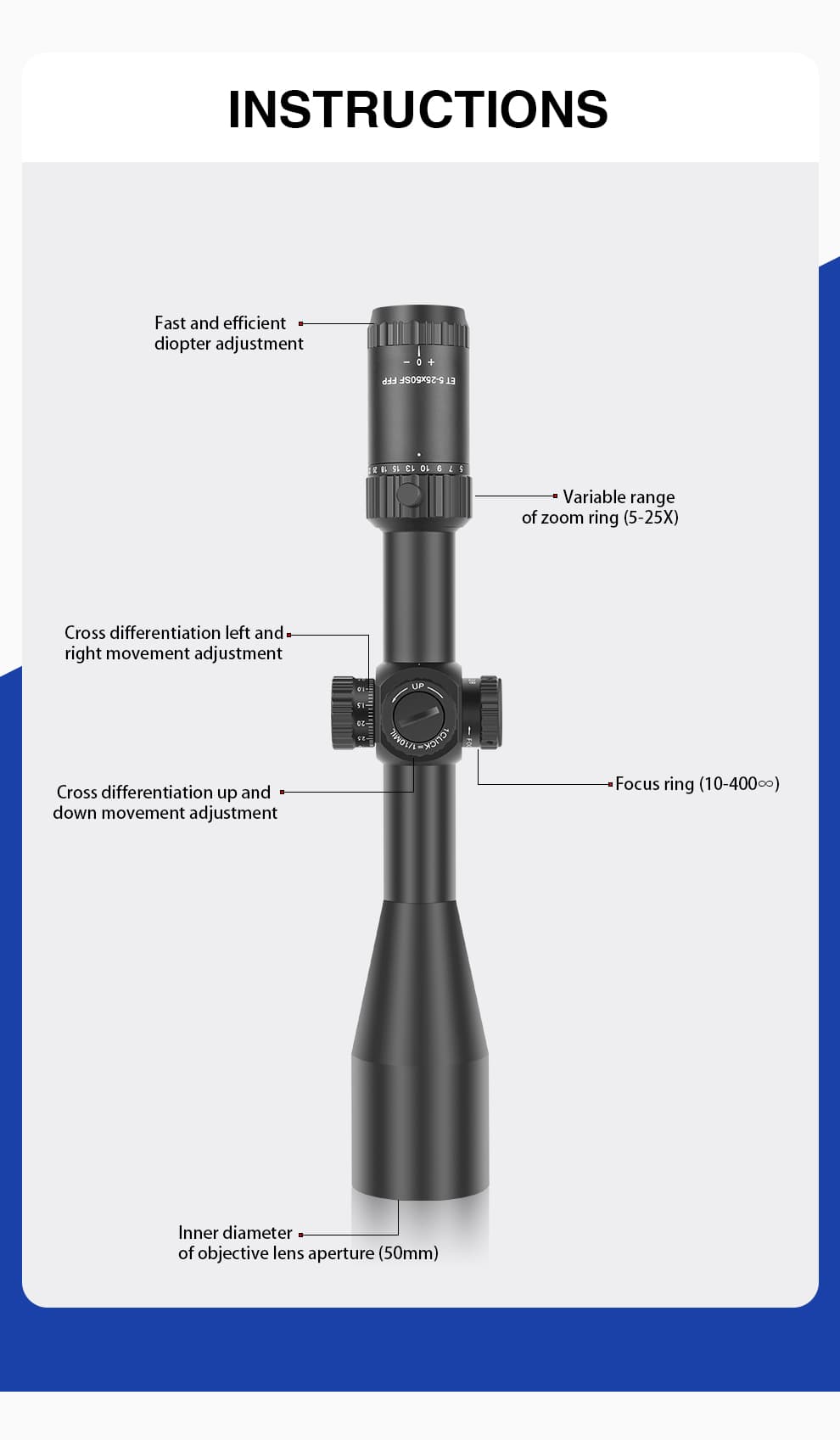 • Sniper rifle: The high magnification (5 – 25 times) and high-precision aiming design of this scope can meet the needs of long-range precision shooting of sniper rifles.