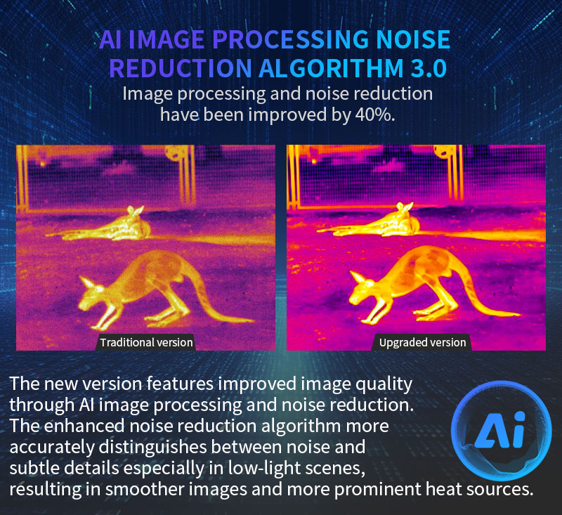 The new version features improved image quality through AI image processing and noise reduction. The enhanced noise reduction algorithm more accurately distinguishes between noise and subtle details, especially in low-light scenes, resulting in smoother images and more prominent heat sources.